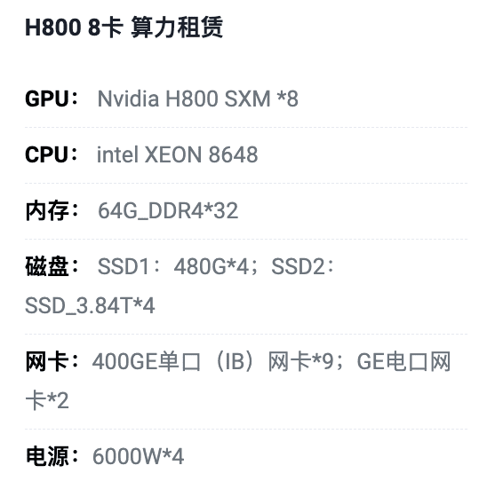 承德H800八卡算力租用价格